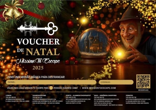 Queres surpreender alguém neste Natal com uma experiência memorável? O Voucher de Natal Mission To Escape é a prenda ideal para amigos, familiares ou colegas. Embora tenha sido criado como presente de época, está disponível durante todo o ano, permitindo oferecer um escape game inesquecível em 2026. O voucher dá acesso a uma missão de 60 minutos repleta de enigmas e desafios